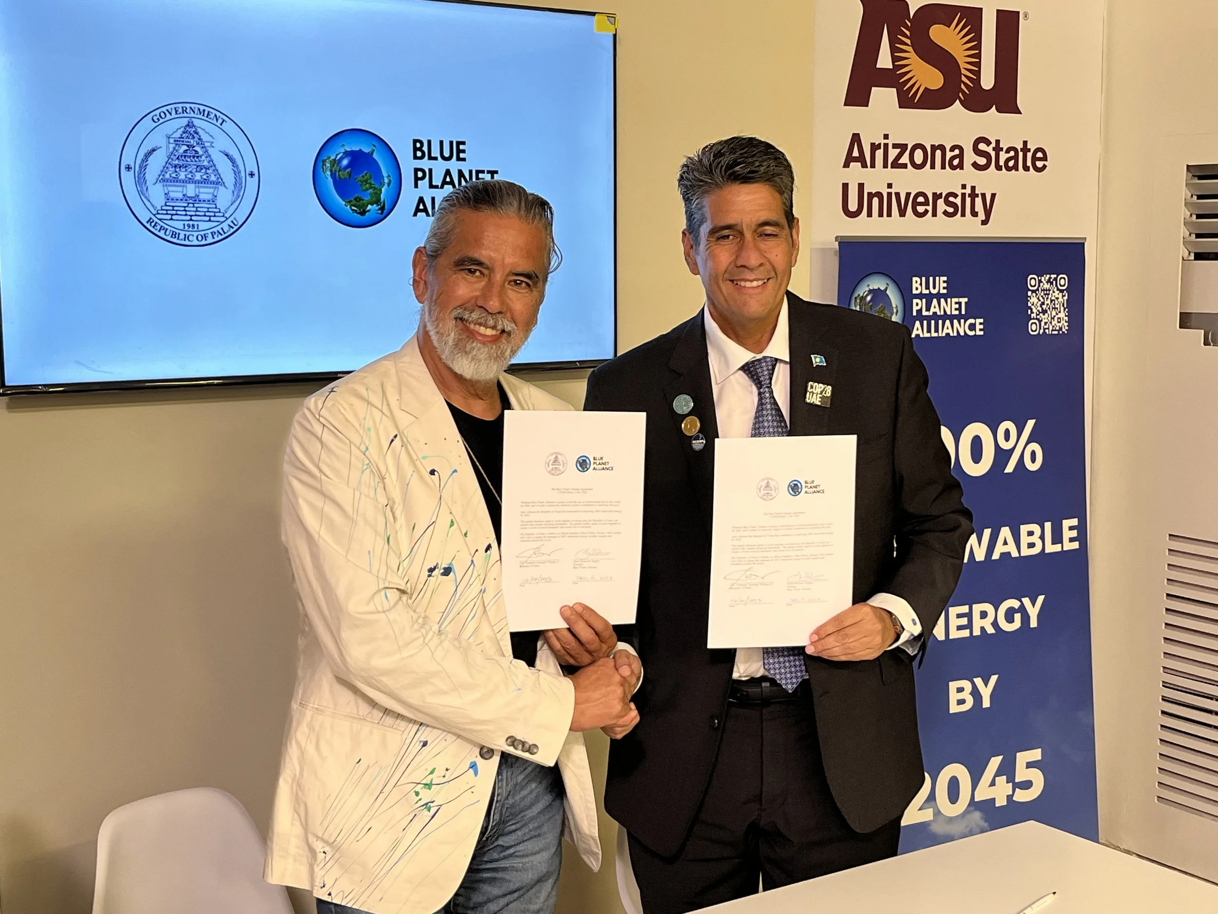 1) Blue Planet Alliance: Climate visionary Henk Rogers led the movement in Hawaii that helped it to become the first U.S. state to pass a law mandating a 100% transition to renewable energy by 2045. After more than 20 U.S. states and territories followed suit with their own versions of that law, Rogers founded Blue Planet Alliance (BPA) to bring that success to other islands, around the world. At COP28, BPA signed Blue Planet Climate Agreements with Palau and Curacao, making them the fourth and fifth islands to join the movement and to officially announce their intentions to transition to 100% renewable energy. With more islands on the way, soon BPA will have a sizable bloc of countries and territories, a bottom-up movement committed to ending the use of carbon-based fuel.